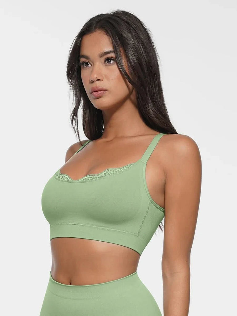 neckline with lace detail—wear it inside or out. - Tummy-Sculpting