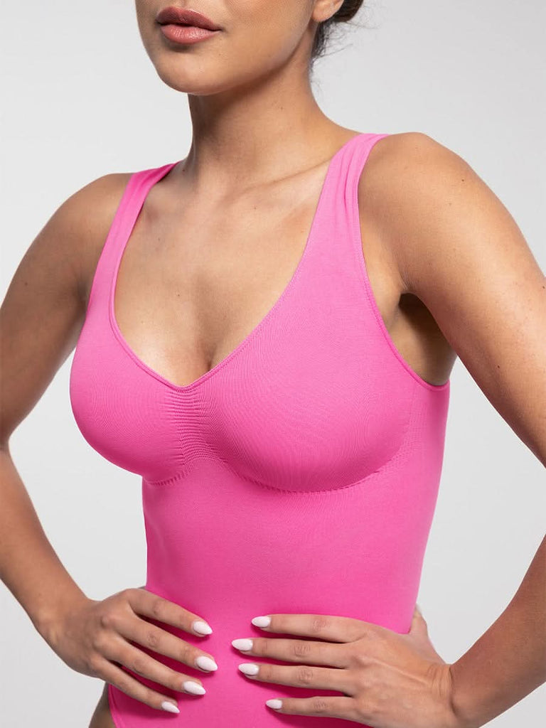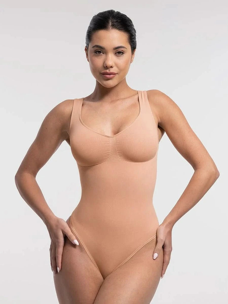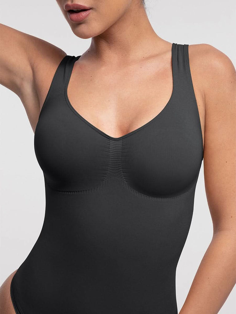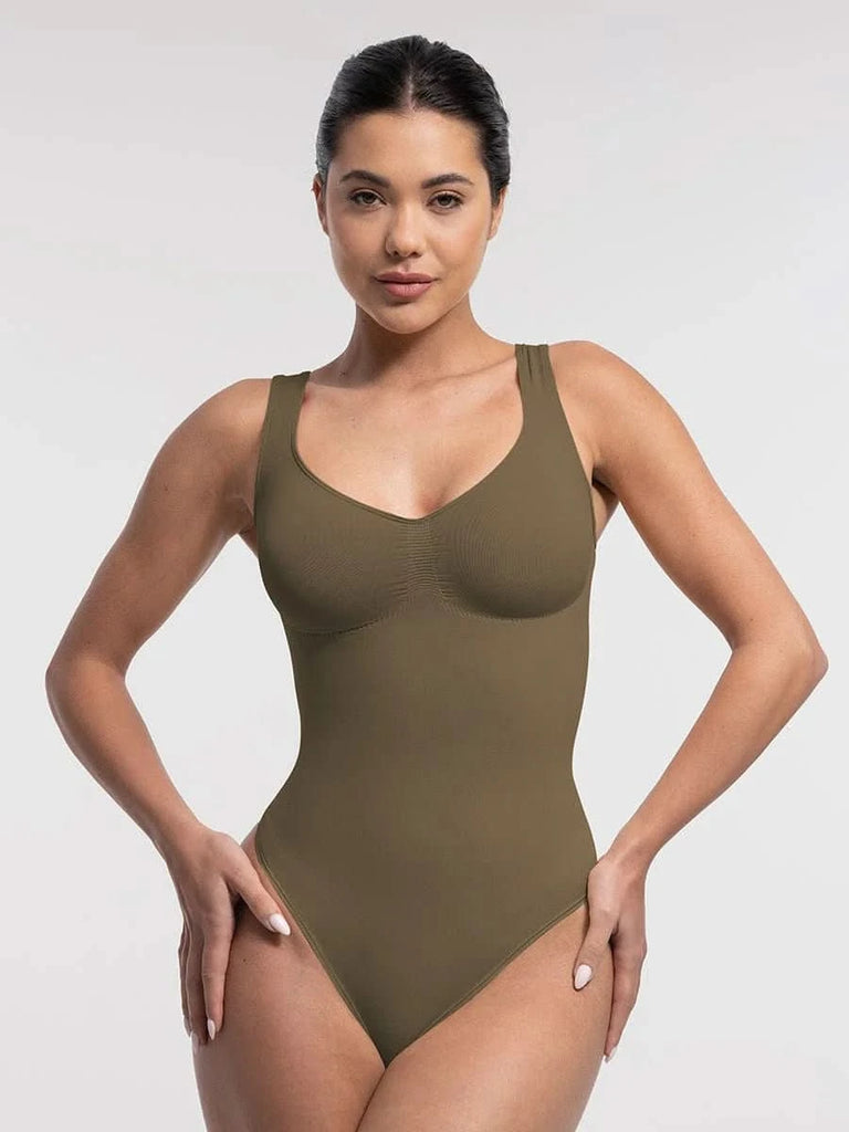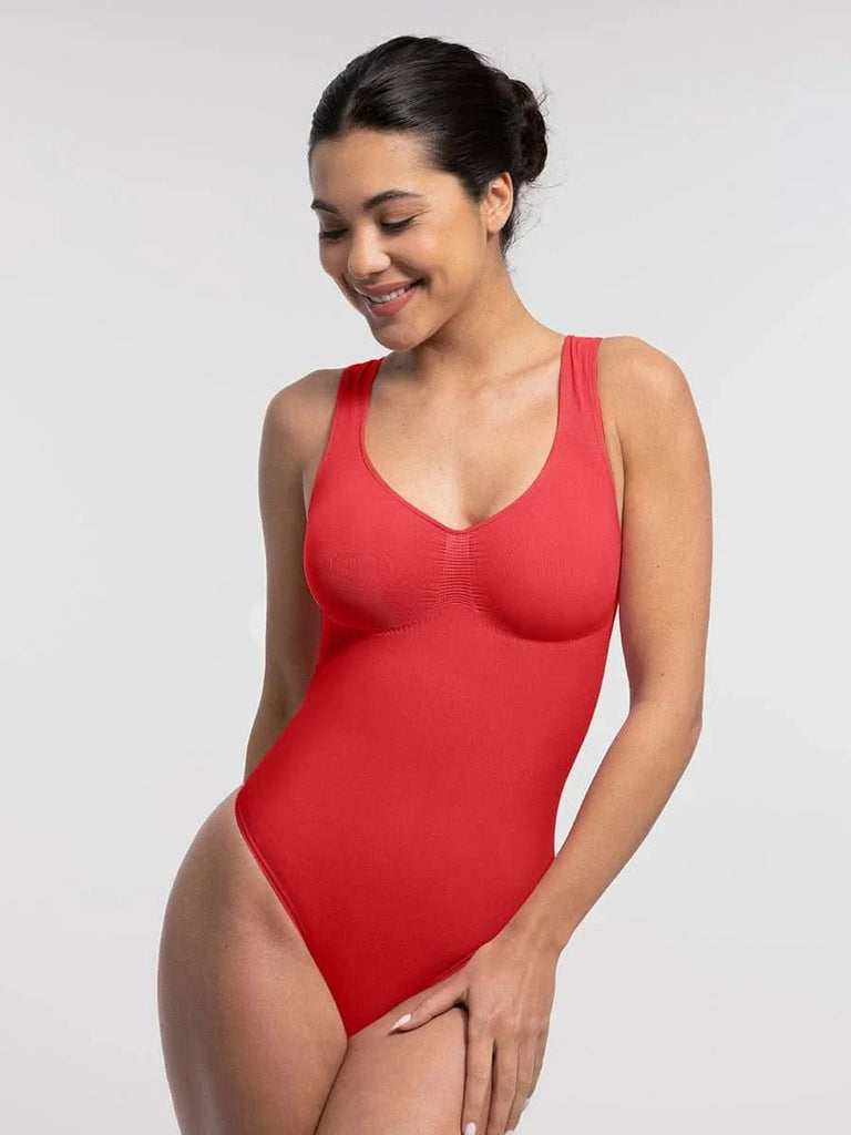 Designed to flatter from every angle, this seamless thong bodysuit features a sculpting diamond neckline, ruched bust support, and gentle tummy control — all with an invisible finish under your favorite outfits.